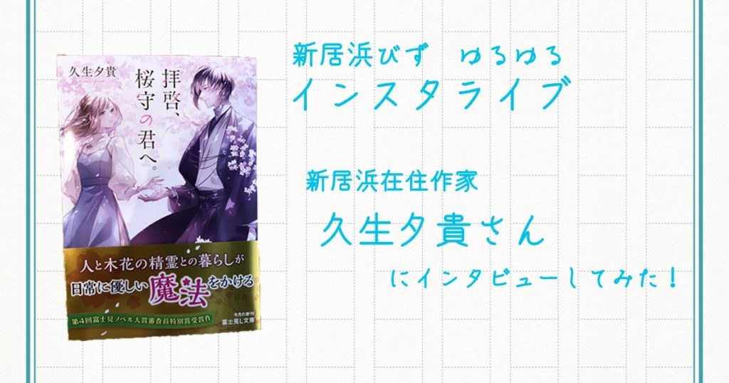 記念すべき第1回は、新居浜在住作家 久生夕貴さんをお迎えして、本の紹介やどうやって小説を作っているのかなどなど聞きたいことをねほりはほり聞いてみました。